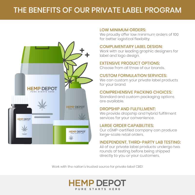 When you purchase wholesale CBD from Hemp Depot, you’re acquiring the purest, highest-quality products available on the market. All of our wholesale tinctures, isolate, edibles, vape products, pet products, and topicals are manufactured from hemp plants grown and bred on our very own farms in Colorado. Our non-GMO hemp crops are cultivated with organic farming practices to ensure no pesticide or toxin exposure.